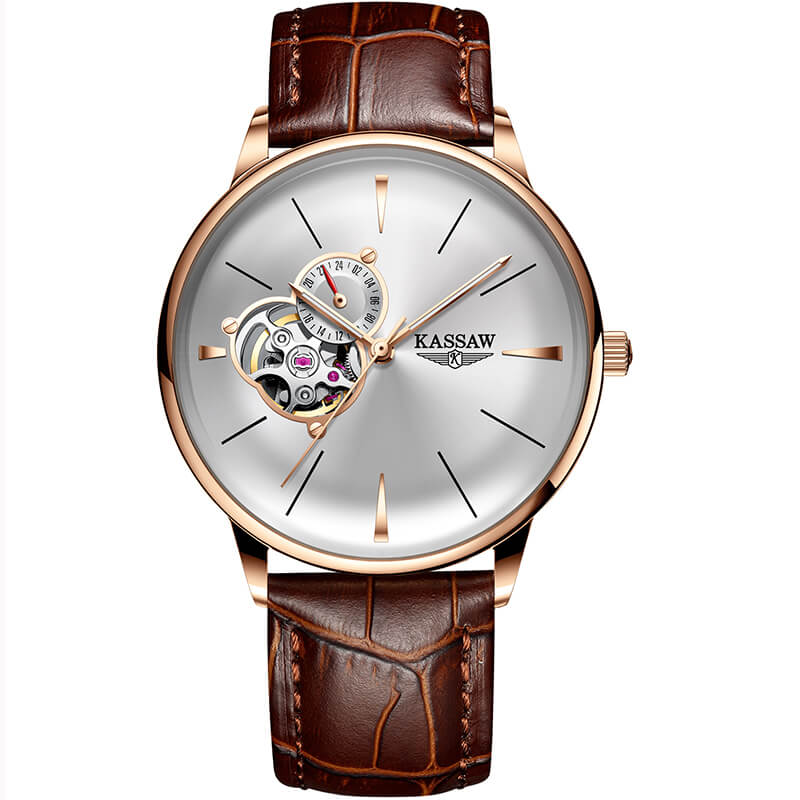 Kassaw K873 còn sở hữu cho mình một chiếc dây da cao cấp sang trọng đeo rất êm tay, vòng benzen mạ vàng 18k siêu đẹp quanh mặt kính đồng hồ, làm nổi bật lên những nét siêu đẹp không tì vết của Kassaw K873 khi đeo trên cổ tay của bạn.