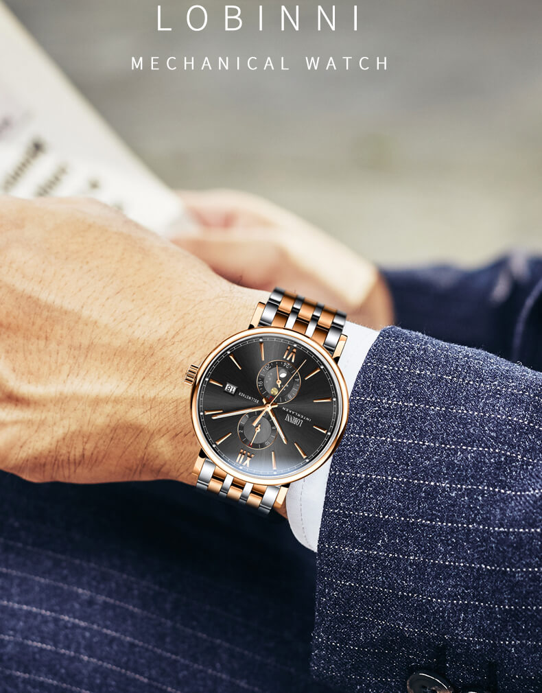 ???? Cỗ MÁY CƠ IN-HOUSE do chính Lobinni sản xuất vì vậy máy vận hành ổn định, độ chính xác cao hơn với sai số ước tính chỉ 10-15s/ngày.