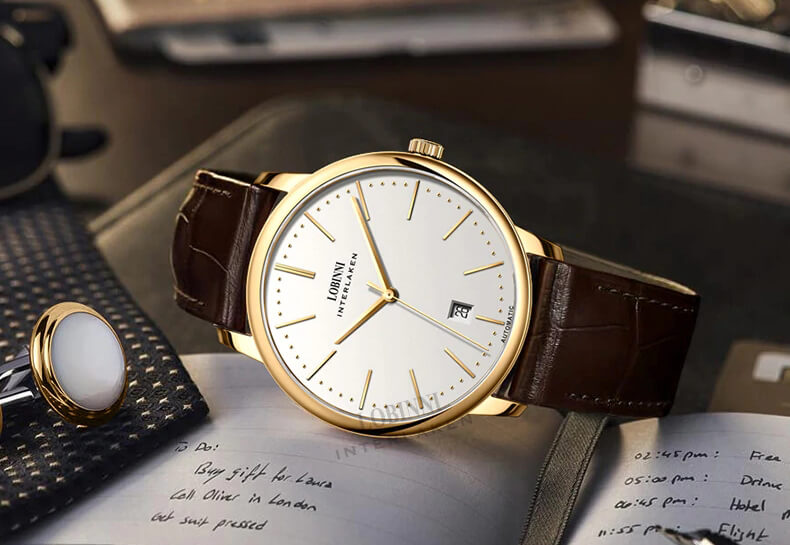 - Ô cửa sổ lịch ngày ở vị trí 6h cùng sự hiện diện của dây da dập vân cá sấu, giúp cho LOBINNI L12028 tăng độ thẩm mỹ, đúng chuẩn form cổ điển, thanh lịch.