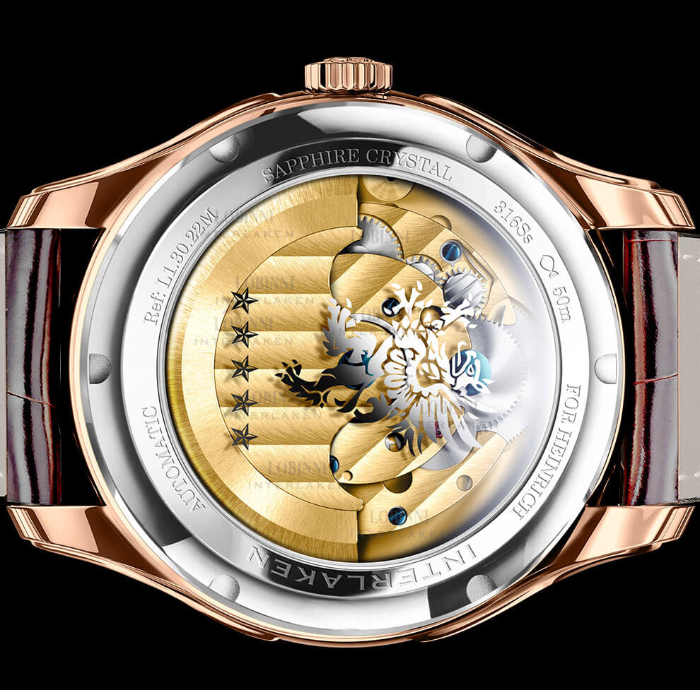 CASE BACK XUYÊN THẤU: Mặt trước hở lộ vừa phải, mặt sau "Bung xõa" lộ thiên hết sức độc đáo. Quả văng được mạ vàng PVD không chỉ tạo tính thẩm mỹ, còn giúp tăng khả năng chống oxy hóa khi đồng hồ chẳng may bị vào nước.