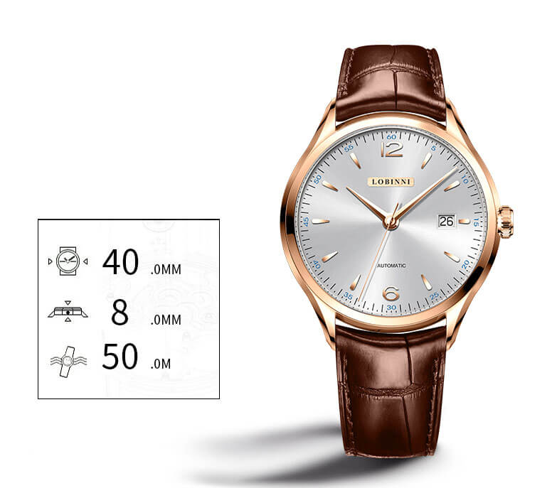 Bộ máy bền bỉ Được trang bị máy inhouse chính hãng với khả năng trữ cót lên đến 40h. Lobinni L16005 thanh lịch mang lại sự an tâm khi sử dụng, bền bỉ theo tháng năm