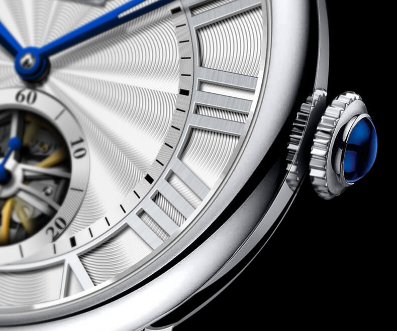 ➤ THIẾT KẾ TỐI GIẢN: Bộ kim xanh huyền bí làm điểm nhấn. Bên cạnh đó, mặt số, vân guilloché, ô lịch đều được sắp xếp hài hòa, tôn vinh tinh thần “Simple is the best”.