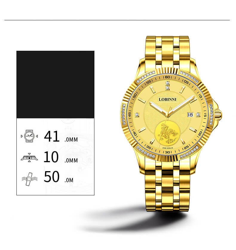 Đồng hồ nam chính hãng LOBINNI L19005-1 (Mạ vàng 24k)
