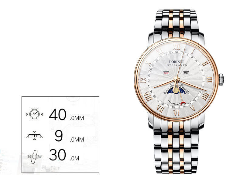 LOBINNI NO. 3604M DRESS WATCH CỔ ĐIỂN ĐẦY TINH TẾ