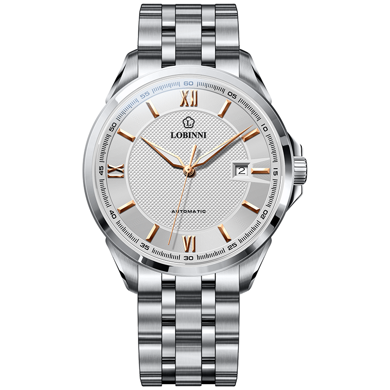 Một chiếc đồng hồ với BỘ KIM sắc bén được vót nhọn tinh tế, Ô CỬA SỔ LỊCH NGÀY duy nhất nằm ở vị trí 3 giờ quen thuộc, LOGO LOBINNI nằm dưới góc 12 giờ với hình bông hoa 5 cánh. Thiết kế này sẽ quyến rũ bất cứ quý ông nào yêu thích sự đơn giản.