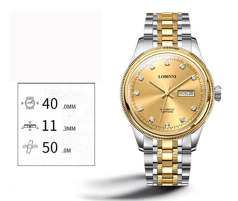 -35%Đồng hồ nam chính hãng LOBINNI L19015-2 Mạ vàng 24k