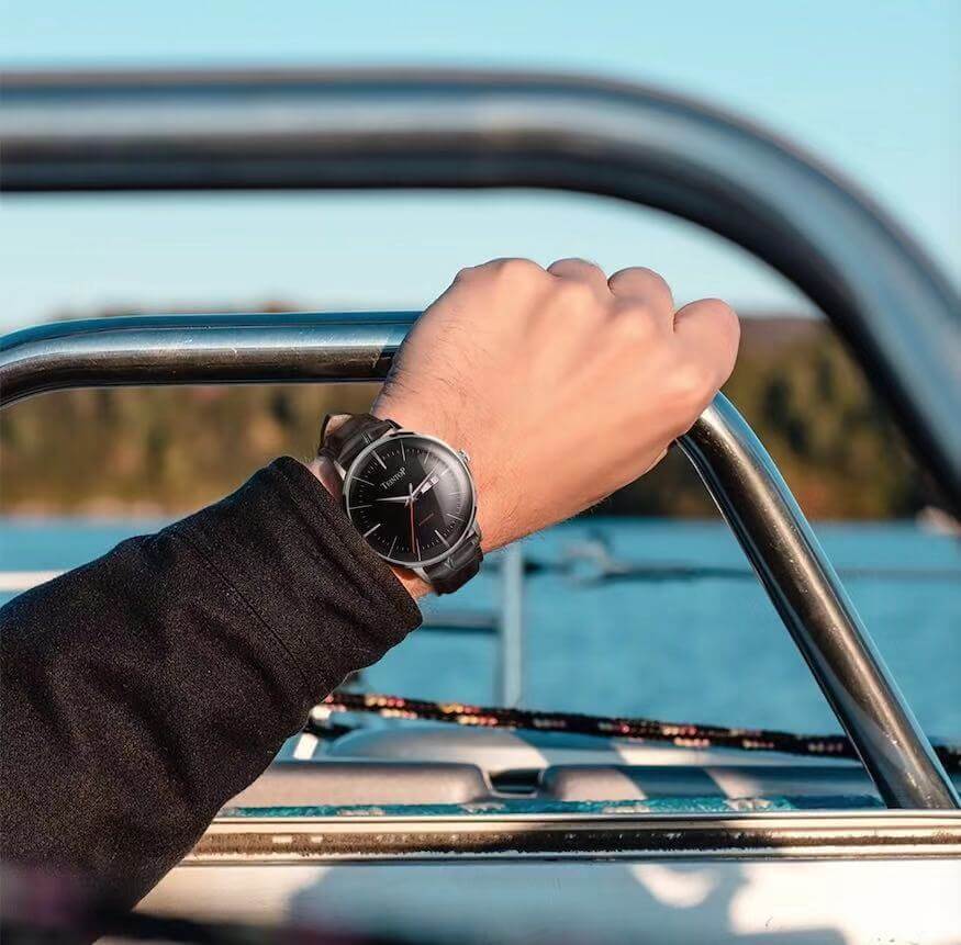 T7009 còn sở hữu cho mình một chiếc dây da cao cấp sang trọng đeo rất êm tay, vòng benzen trắng siêu đẹp quanh mặt kính đồng hồ, làm nổi bật lên những nét siêu đẹp không tì vết của con T7009 khi đeo trên cổ tay của bạn.